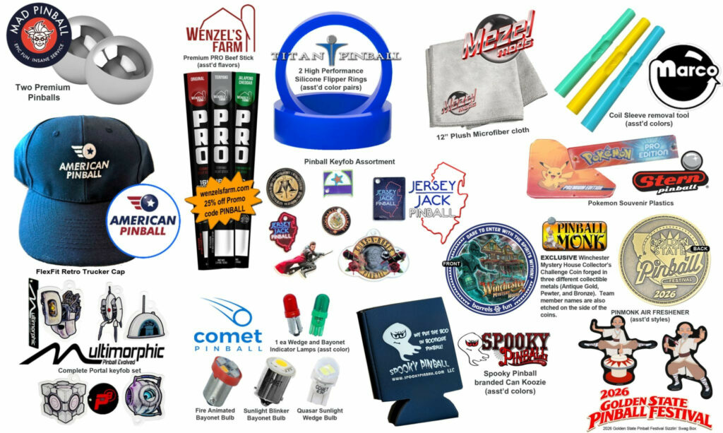 Please remember Golden State Pinball Festival is a non-profit event and the proceeds benefit local charities. We trust that the kind-hearted owners who bring games want to see the show improve every year and will keep their games on the floor until the festival closes. Thank you for your cooperation!